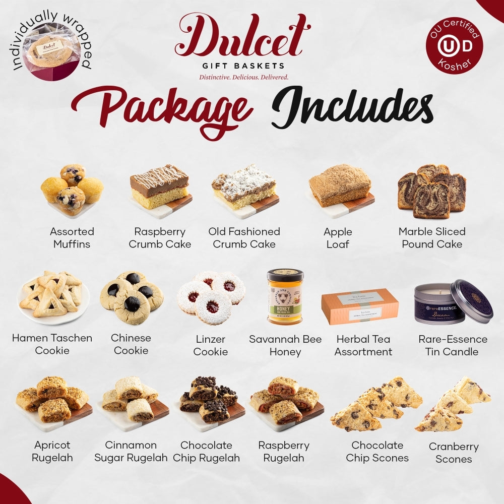 Delight in the ultimate gourmet experience with our thoughtfully curated Gourmet Food Basket, a perfect gift for any occasion. This exquisite 7-pound gift basket is designed to pamper both women and men with its luxurious assortment of treats. Indulge in a delightful selection of cookies, cakes, and sweets that promise to satisfy every sweet tooth. Complementing these delectable goodies, the basket includes an aromatherapy candle for a soothing ambiance, a premium tea box for a refreshing brew, and a jar of natural honey to add a touch of sweetness. Whether you're celebrating a birthday or simply wishing to surprise a loved one, this gourmet snack basket invites relaxation and joy, making it an unforgettable gift choice.