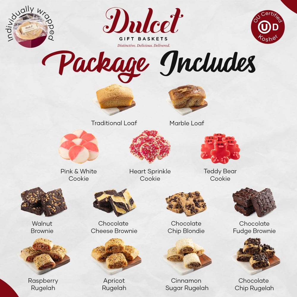 Celebrate love this Valentine's Day with a delightful bakery tin designed to ignite romance. This charming gift basket features an array of pink and white iced cookies, all-natural tea bread, and indulgently rich chocolate brownies, each crafted to complement a steaming cup of tea perfectly. Whether you're sharing these romantic treats with a special someone or surprising them with a unique gift, this tea basket collection is a rare find that promises warmth and affection. Perfect for those seeking a heartfelt Valentine's Day gift, this collection is sure to leave a lasting impression.