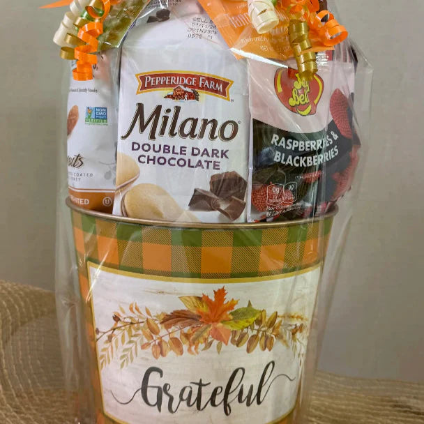 In summary, our Small Grateful Fall Gift Basket is a perfect embodiment of the autumn spirit. With its carefully curated selection of treats and its charming presentation, it makes an ideal gift for anyone you wish to thank or celebrate this season. Whether you're sending it as a token of appreciation or simply to share the joy of fall, this gift basket is sure to bring a smile to the face of anyone who receives it. Consider it for your next gift basket delivery and let the flavors of fall bring warmth and gratitude to those you cherish.